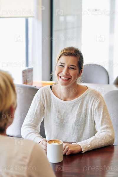 Женщина обсуждает новости с матерью