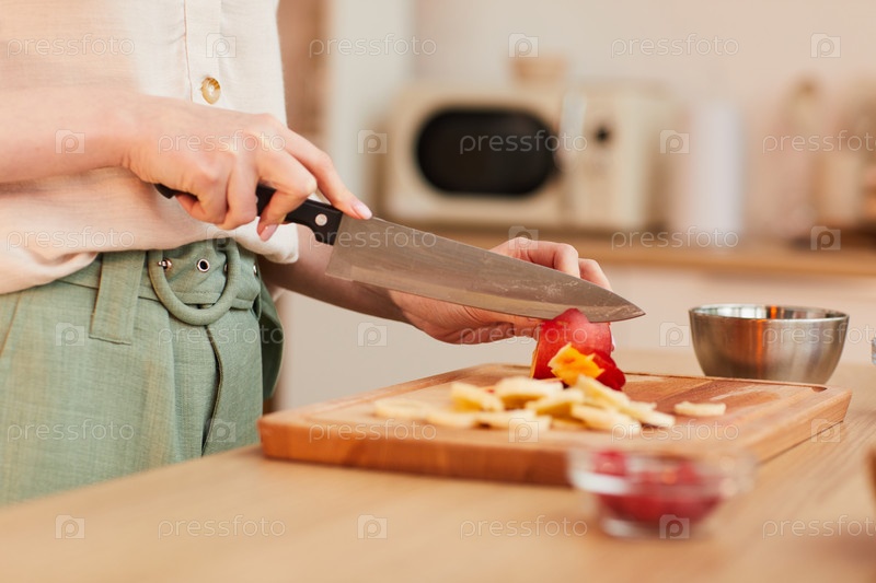 Ближайшее изображение женщины, режущей фрукты на кухне