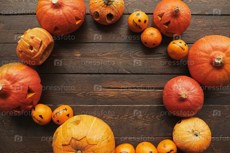Мандаринки и тыквы на столе Flat Lay