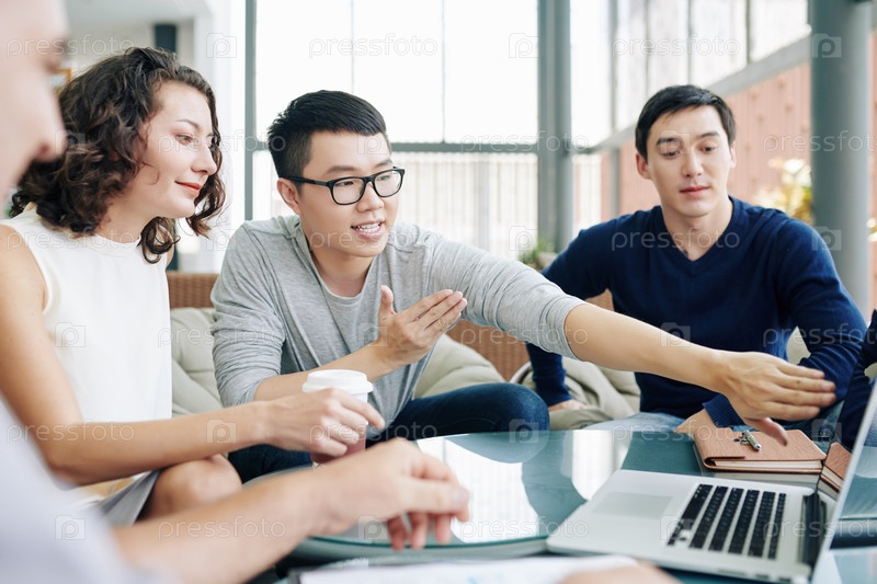 Бизнесмены обсуждают инфографику