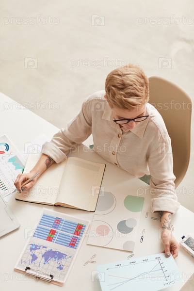 Бизнесвумен на рабочем месте Top View