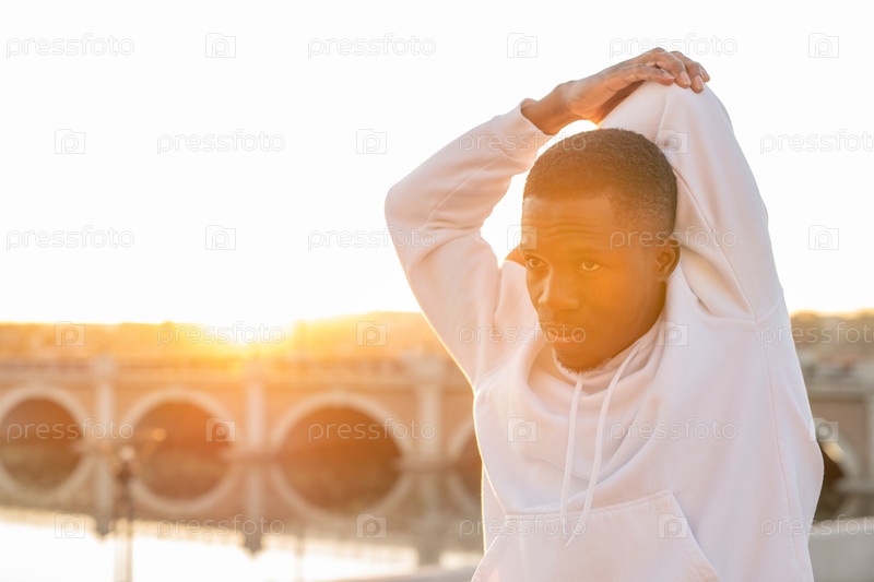 Молодой африканский спортсмен тренируется с распростертыми перед собой руками