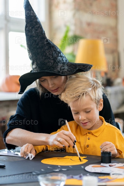 Помогая мальчику нарисовать скелет