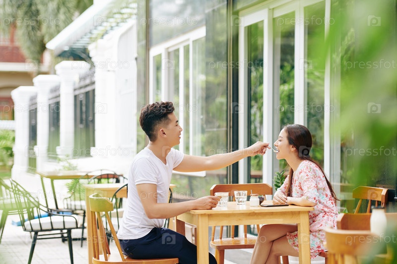 Мужчина кормит подругу