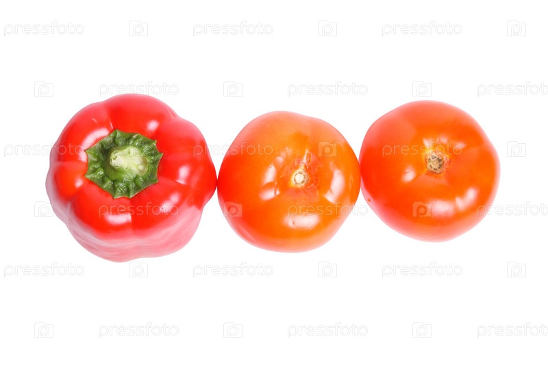 Салат из помидоров и перца на белом фоне (изолированные, путь обрезки)