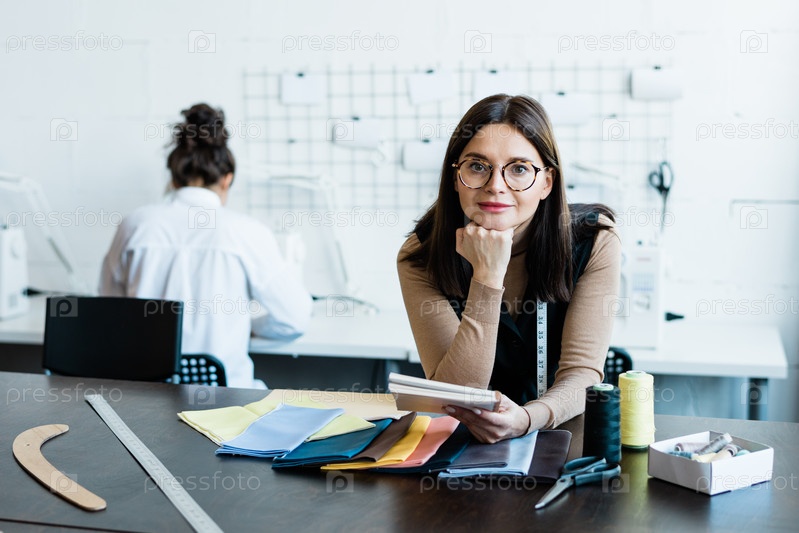 Привлекательная женщина в студии дизайна одежды
