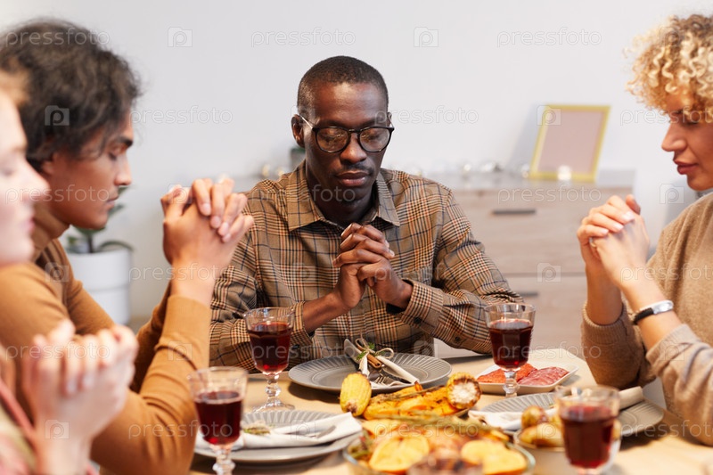 Люди молятся тихо за ужином