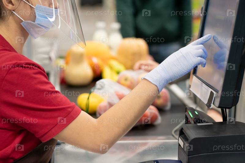 Руки зрелой покупательницы-женщины со смартфоном над платежным автоматом