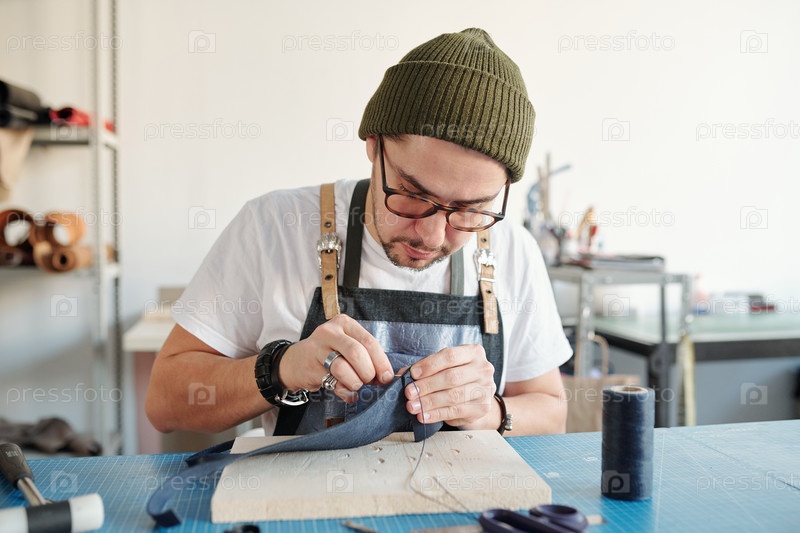 Шитье кожи в мастерской