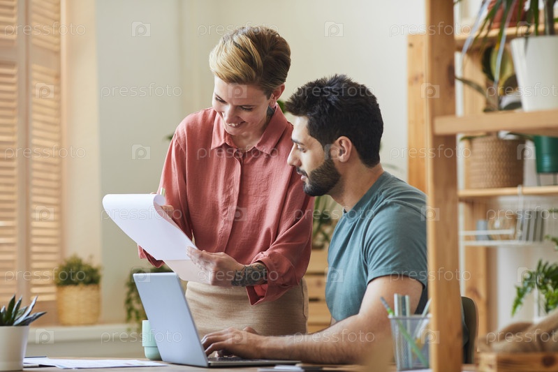 Два современных бизнесмена смотрят на документы
