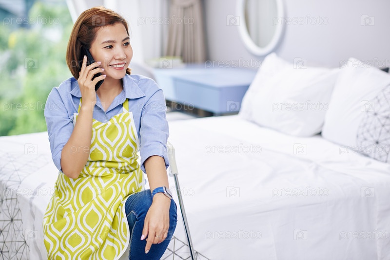 Домашняя хозяйка разговаривает по телефону