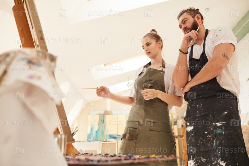 Креативная пара рисует картину на лодке