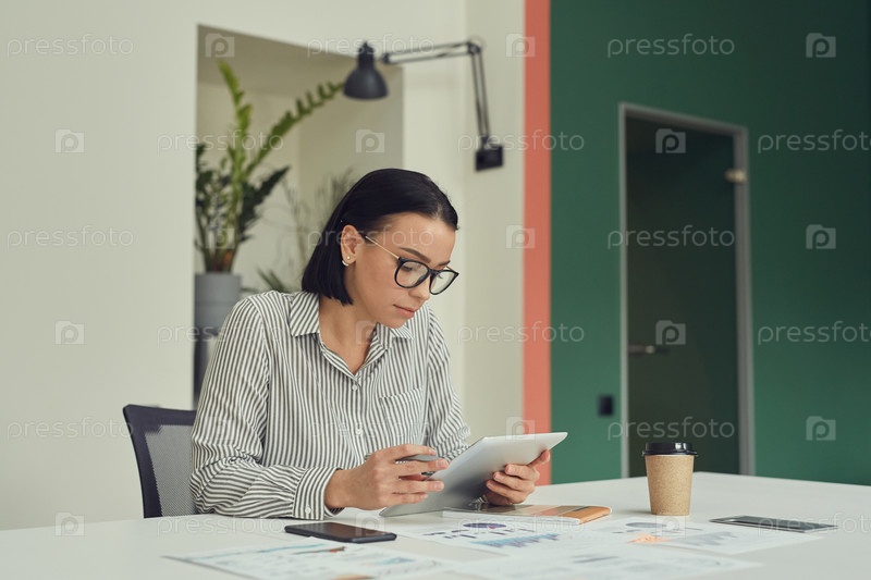 Деловая женщина, работающая на планшете