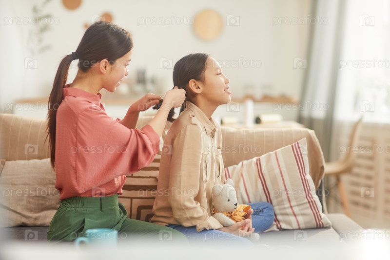 Мать, платящая волосы девочки