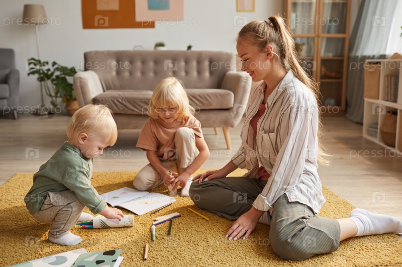 Мать играет с детьми