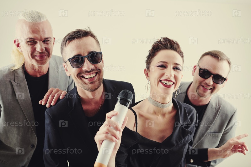 Музыкальная группа поет в караоке