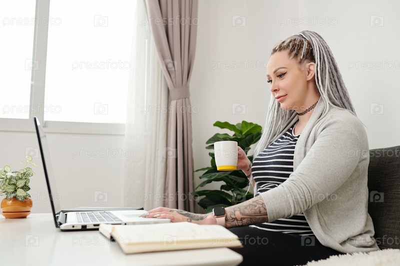 Беременная женщина смотрит вебинар