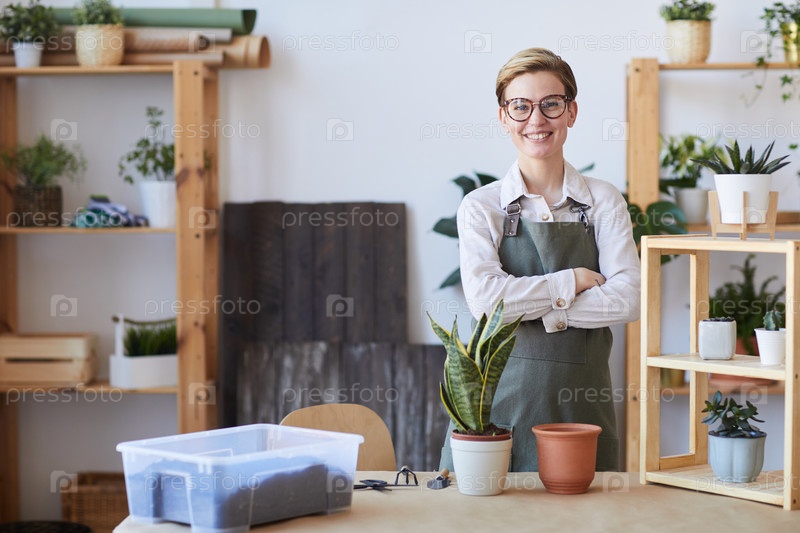 Улыбающаяся женщина сажает растения