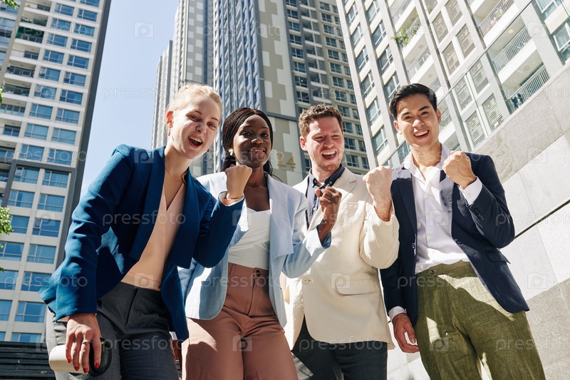 Взволнованная успешная бизнес-команда