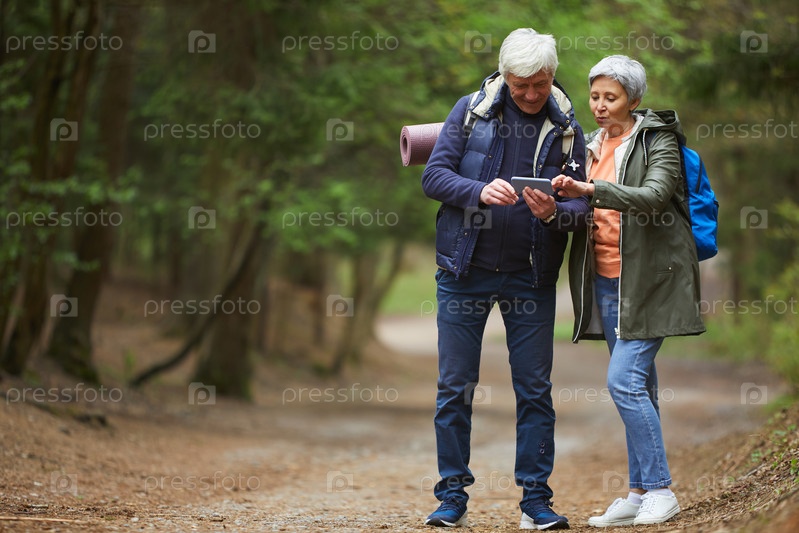 Старшие пары ходят в современный лес
