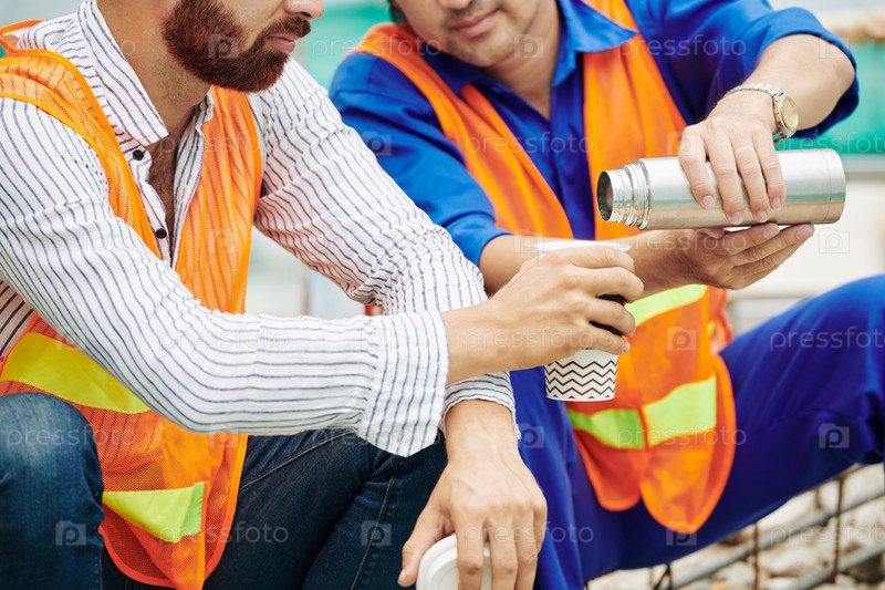 Строительный работник в перерыве на кофе