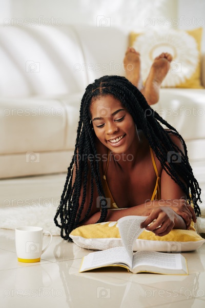 Молодая женщина читает дома