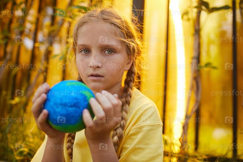 Красноволосая девушка держит планету