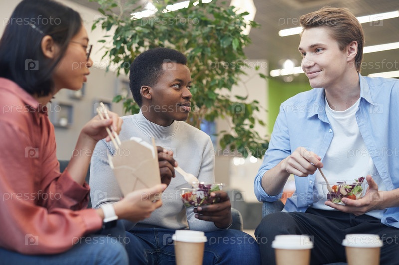 Молодые люди наслаждаются обедом