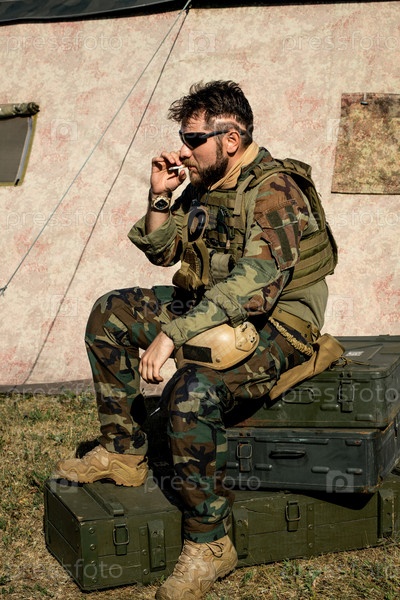 Курильщик в камуфляжном наряде