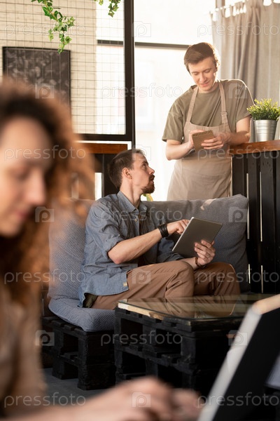 Владелец кафе разговаривает с официантом