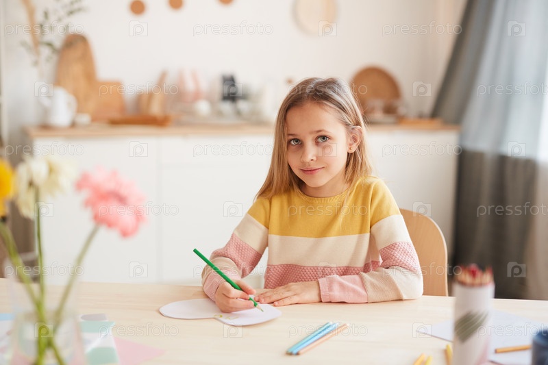 Улыбающаяся девушка делает изготовленную вручную открытку