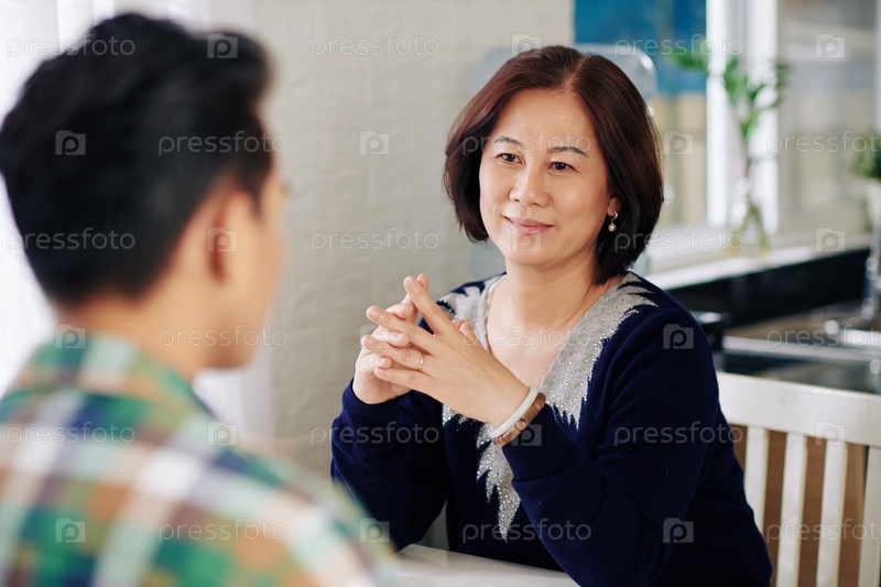 Мать слушает своего сына-подростка
