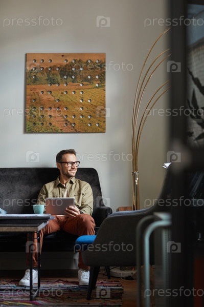 Мужчина, работающий на планшетном компьютере