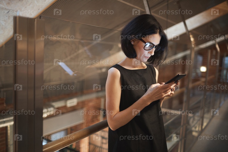 Серьезная деловая женщина, использующая телефон