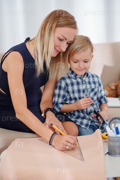 Мать показывает, как рисовать линейную линию