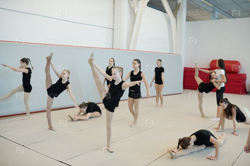 Делаю растяжные упражнения на тренировке чирлидедов