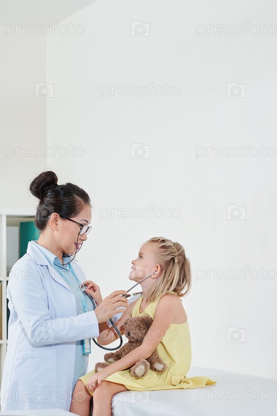 Девушка, слушающая сердцебиение педиатра