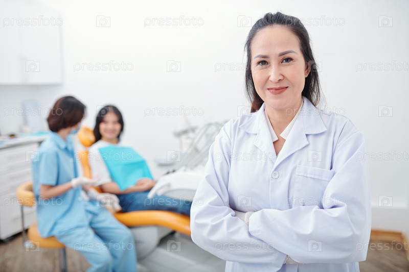 Уверенная и улыбающаяся женщина-стоматолог