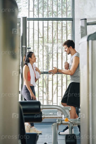 Пара флиртует в спортзале