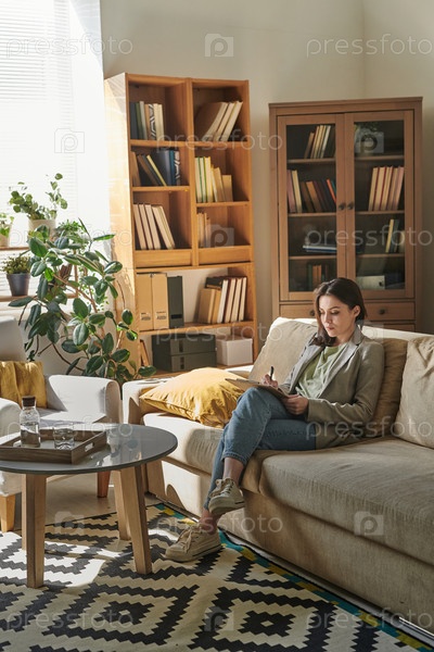 Молодая женщина делает заметки