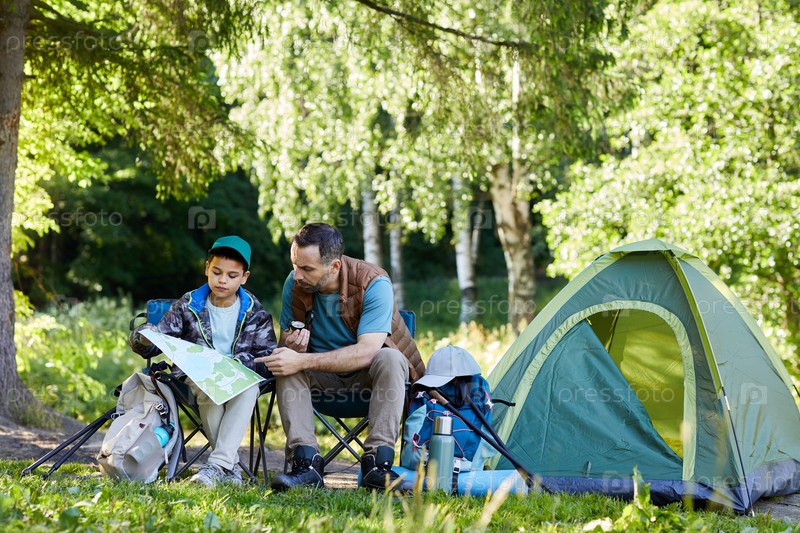 Отец и сын на кемпинге