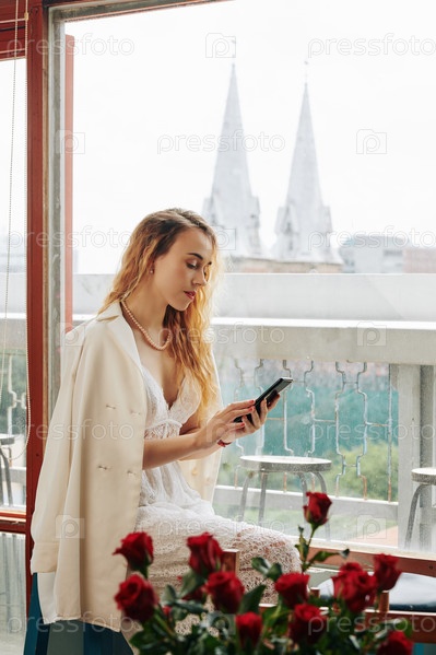 Элегантная женщина проверяет текстовые сообщения