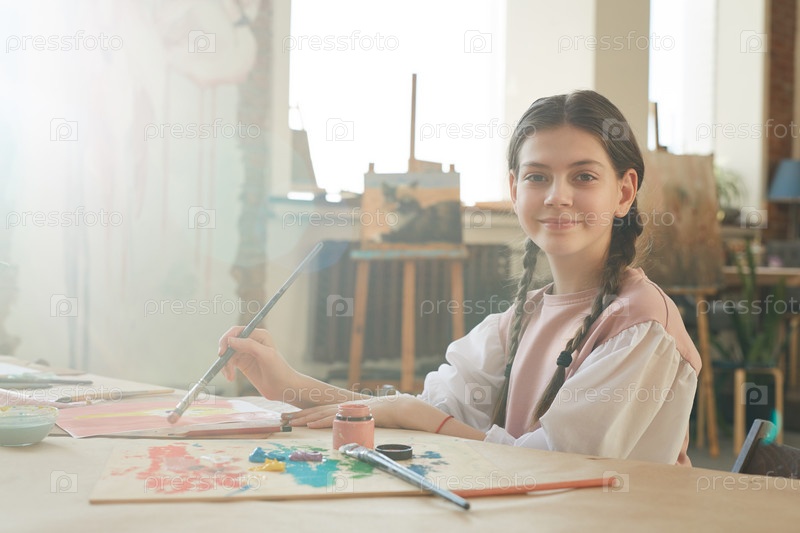 Маленькая девочка рисует в художественной студии