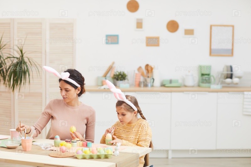 Мать и дочь, носящие уши кролика на Пасху