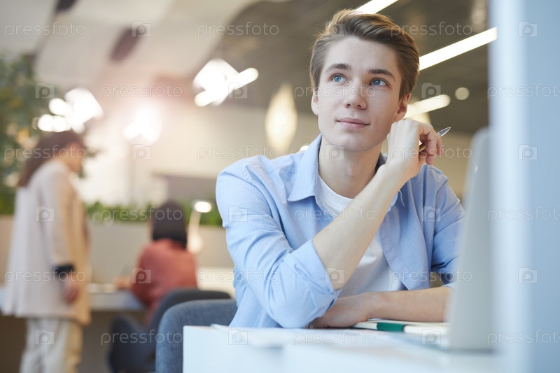 Молодой мечтатель, работающий в кафе