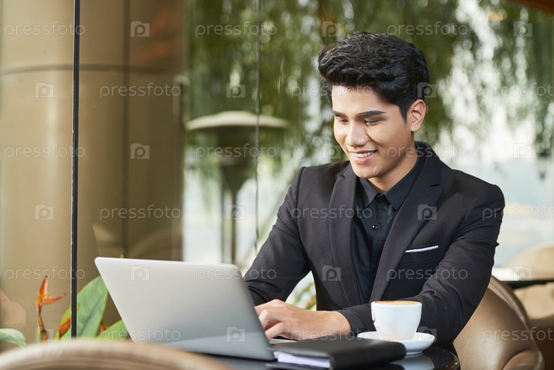 Красивый мужчина работает на ноутбуке