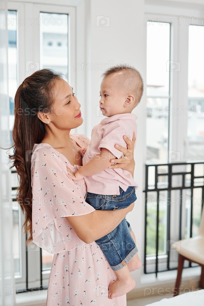 Женщина, несущая своего маленького сына