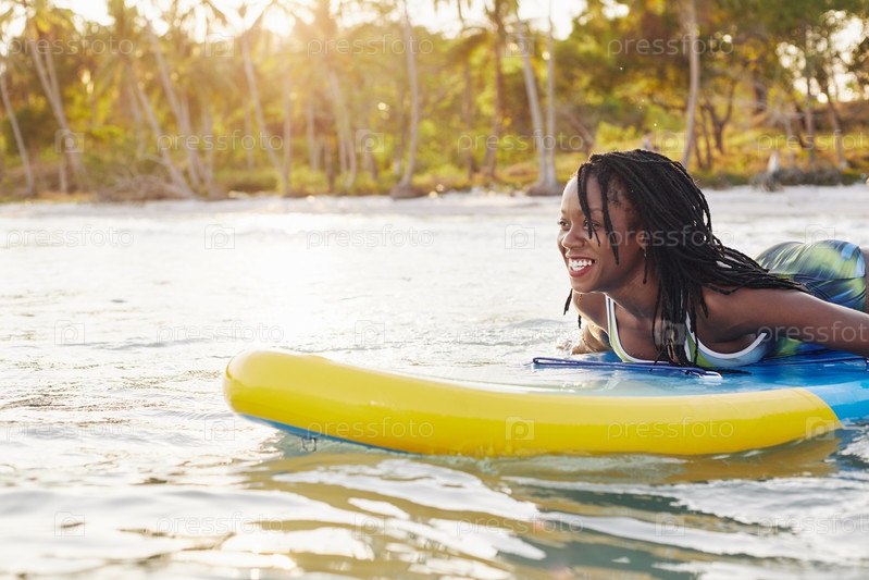 Женщина плавает на суп-борде