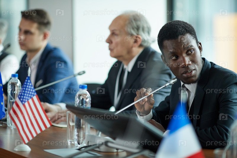 Бизнесмен разговаривает со своими коллегами