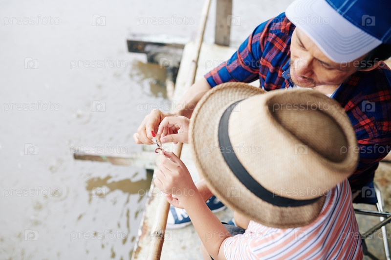 Putting crankbait on hook Поставляя козырь на крючок